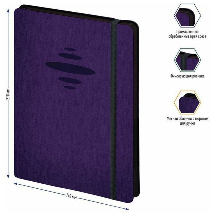 10 цен на Ежедневник недатир. А5, 136л., кожзам, Berlingo "Color Zone", черн. срез, с резинкой, фиолетовый, 276407