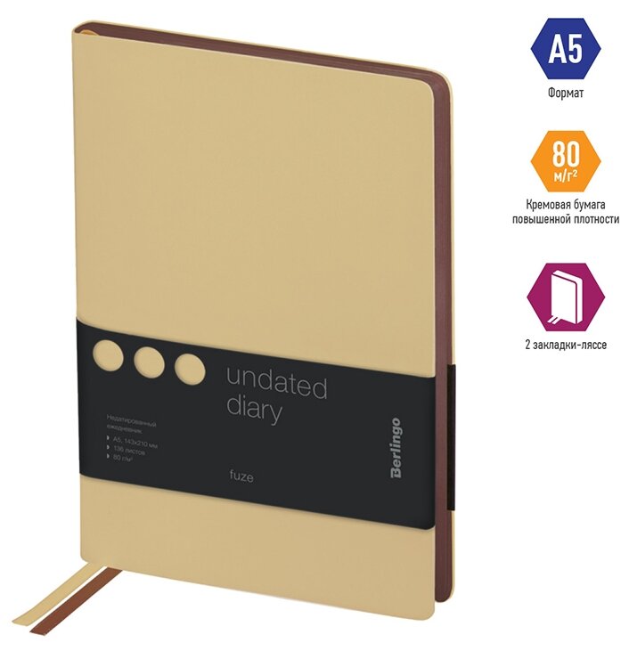Ежедневник недатированный Berlingo A5, 136 листов, кожзам, "Fuze", цветной срез, бежевый (UD0_87506)