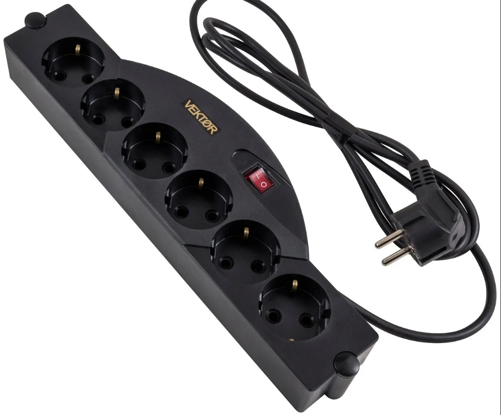 Сетевой фильтр VEKTOR SOFT, 6 розеток, с/з, 10А / 2500 Вт, длина шнура 1.8 м, чёрный 1 046 ₽