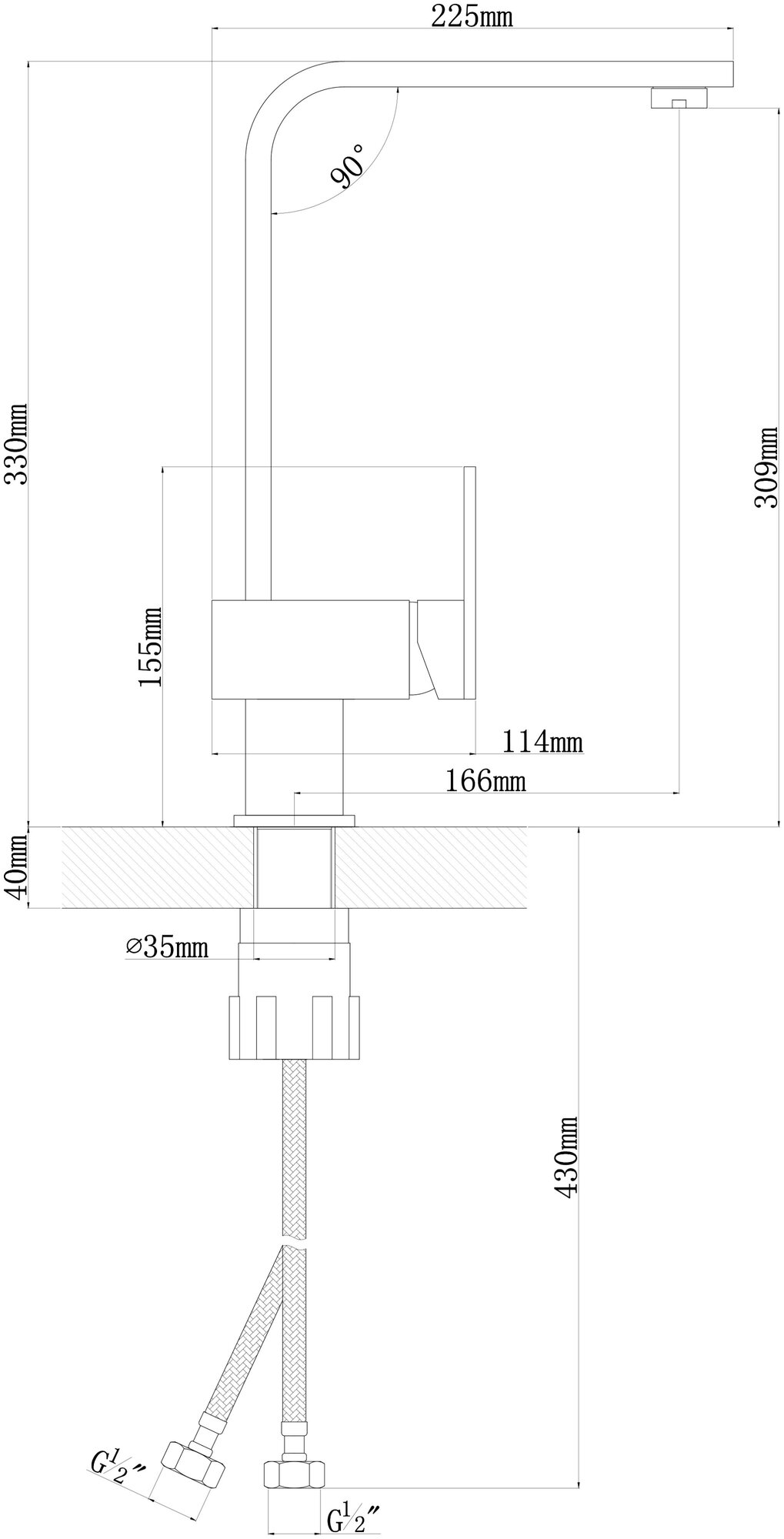 Смеситель для кухни с подключением к фильтру с питьевой водой из нержавеющей стали SUS304 Calorie CAL50116-3