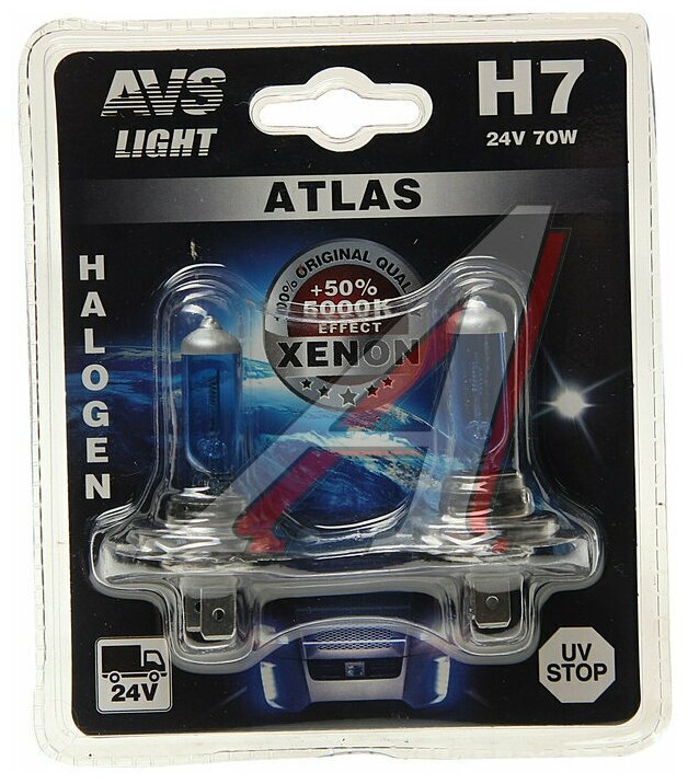 Лампа автомобильная галогенная AVS Atlas A78577S H7 24V 70W PX26d 2 шт. информация: