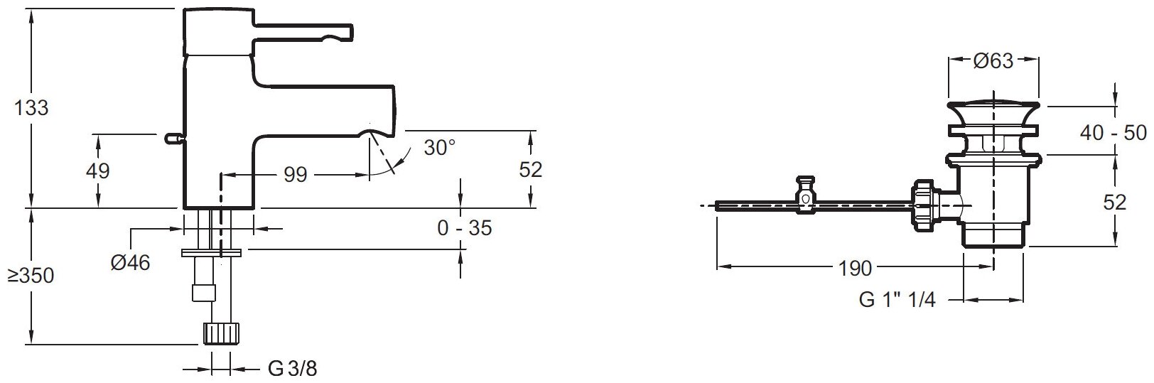 | Высота излива | 52 мм |