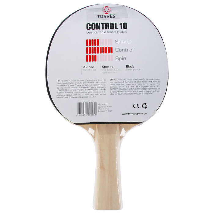 Ракетка для настольного тенниса Torres Control 10, для начинающих (1 шт.) информация: