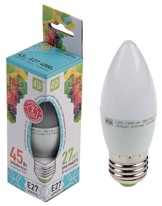 10 цен на Лампа светодиодная LED-СВЕЧА-standard 5Вт 230В Е27 4000К 450Лм ASD