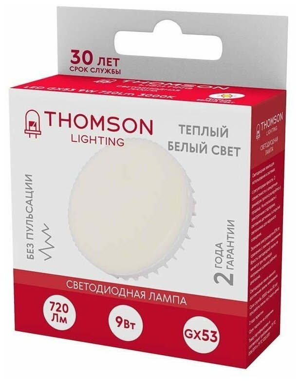 Отзывы на Лампа светодиодная Thomson GX53 9W 3000K таблетка матовая TH-B4006