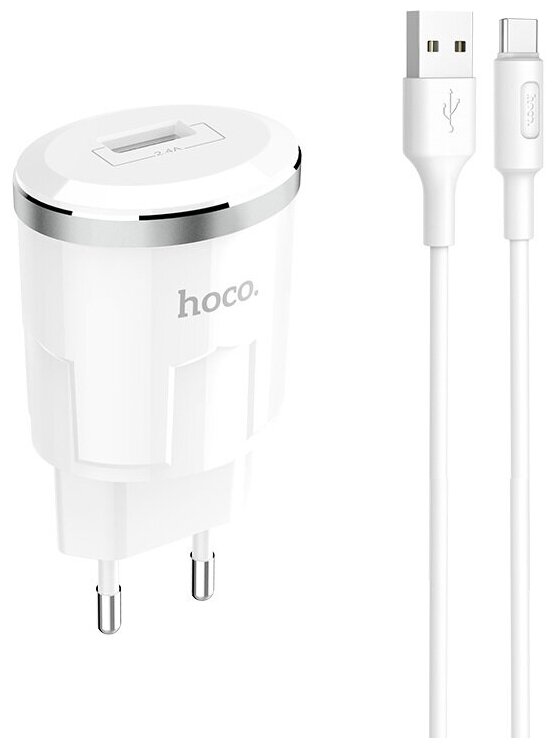 Сетевое зарядное устройство (СЗУ) Hoco С37A (USB) + кабель Type-C, 2.4 А, белый