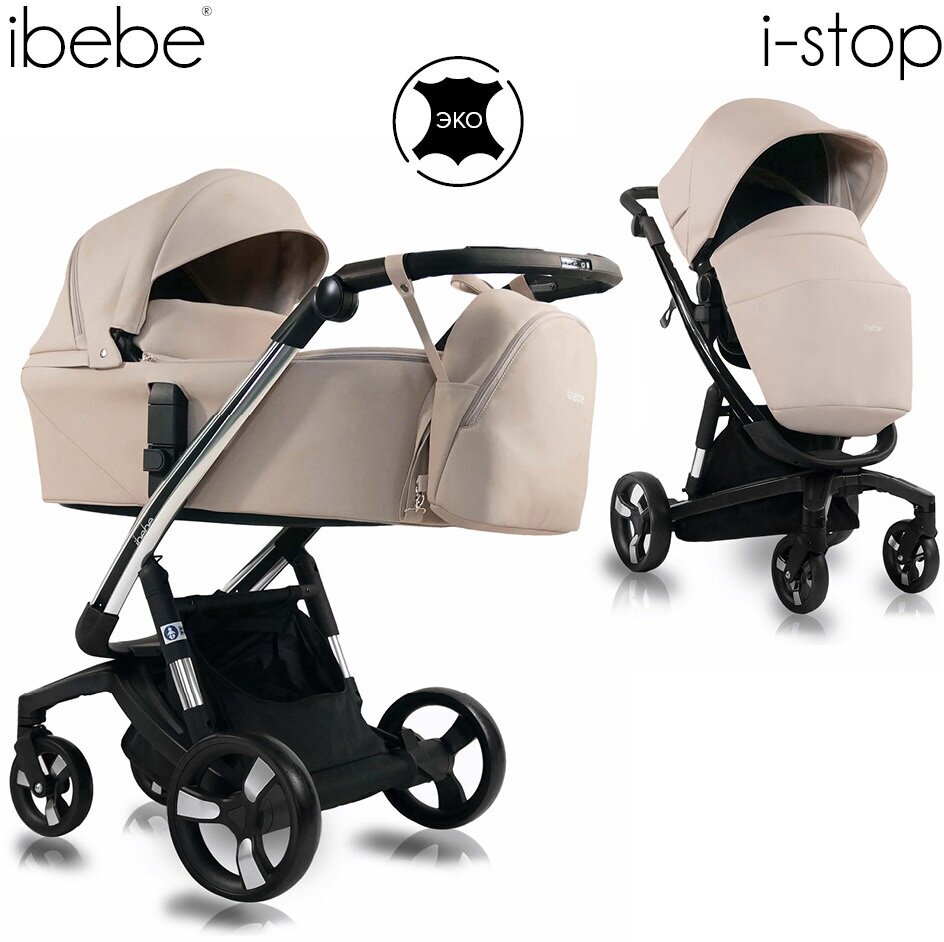 10 цен на Коляска 2 в1 Ibebe I-Stop Leather короб+прогулка Beige/Chrome