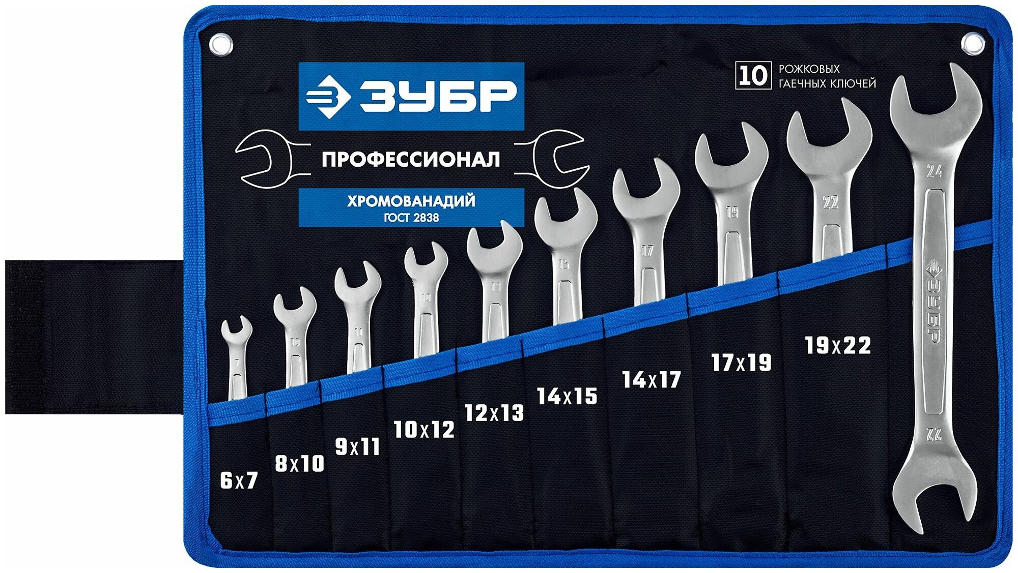 ЗУБР 10 шт, 6 - 24 мм, набор рожковых гаечных ключей, Профессионал (27010-H10)