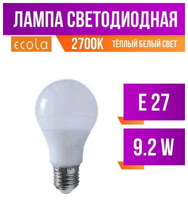 Лампа светодиодная Ecola ЛОН A60 E27 9.2W (9W) 2700K 2K 111x60 360° Premium K7SW92ELB информация: