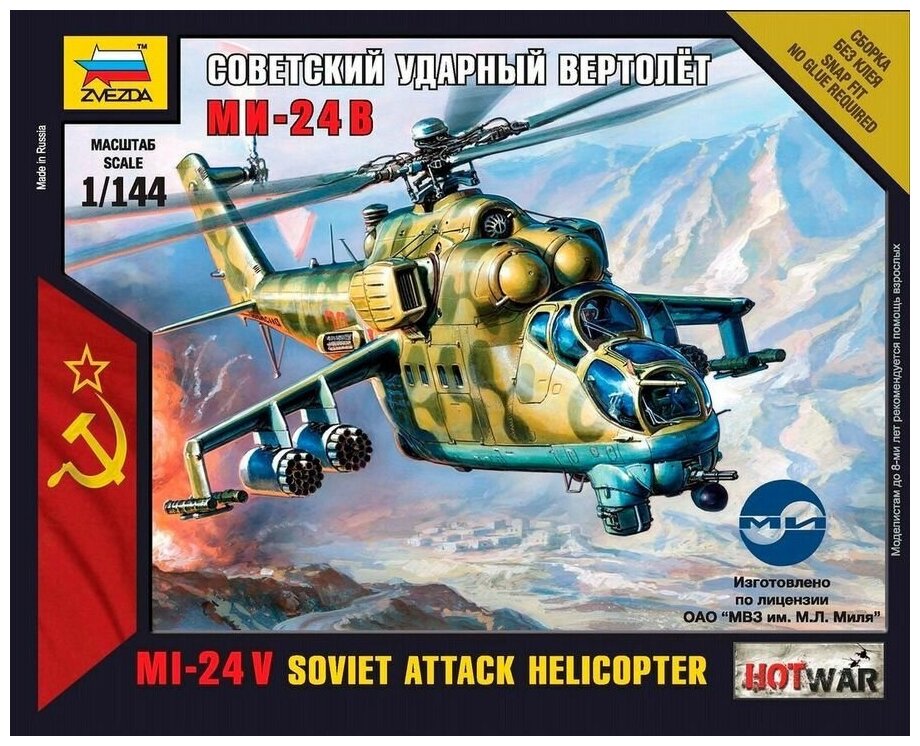 Модель для сборки ZVEZDA "Советский ударный вертолет МИ-24В", масштаб 1:144, 280925 590 ₽