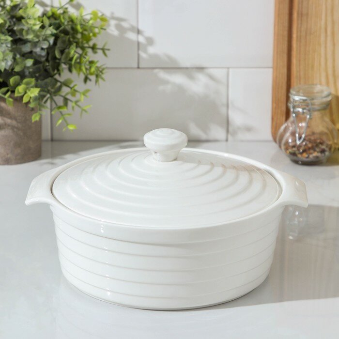 Кастрюля из жаропрочной керамики Доляна «Бруно», 1,57 л, 24,5×21,5×8 см, цвет белый 2 097 ₽
