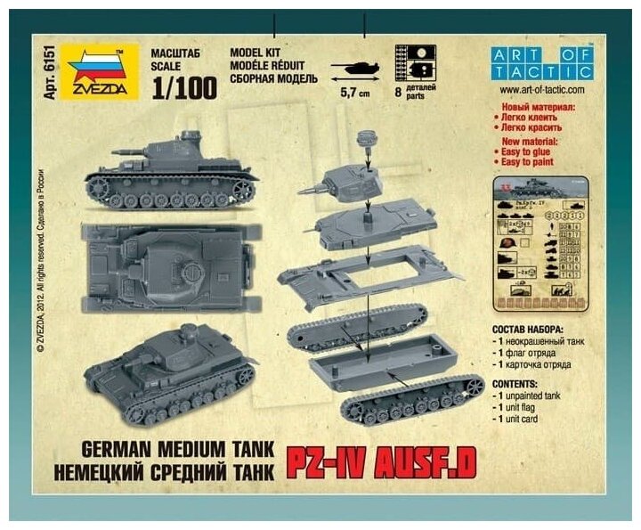 Сборная модель Звезда Немецкий средний танк Pz.Kpfw. IV Ausf. D, 1/100 6151