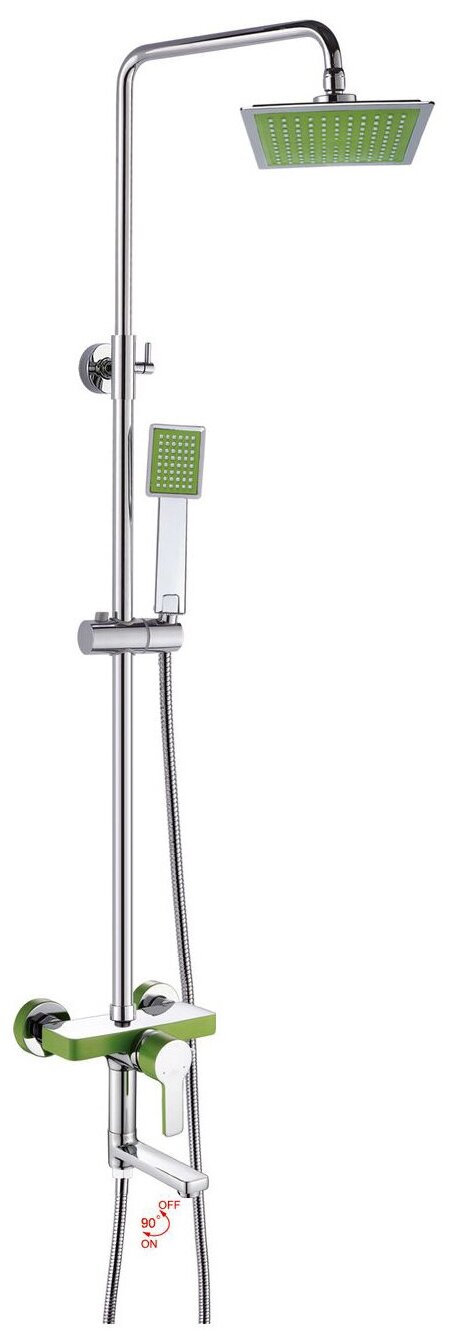 | Дополнительная информация | цвет хром/зеленый; высота стойки для душа: 1210 мм; длина верхнего душа: 200 мм; ширина верхнего душа: 200 мм |