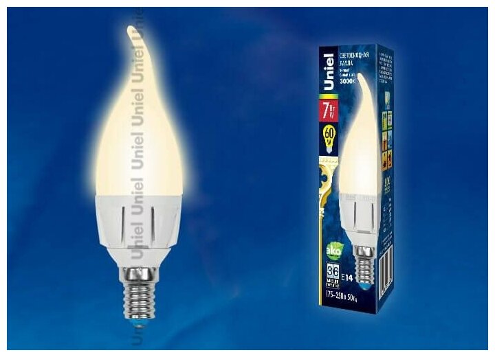 Отзывы на Uniel LED-CW37 7W/WW/E14/FR PLP01WH Лампа светодиодная. Форма «свеча на ветру», матовая. Серия яркая. Теплый белый свет (3000K). Картон. ТМ Uniel