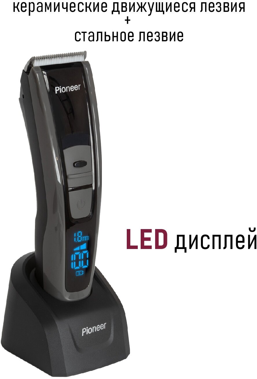 Машинка для стрижки волос Pioneer HC05R со стальным и керамическим движущимся лезвиями, 2 скорости, 7 насадок, работа от аккумулятора