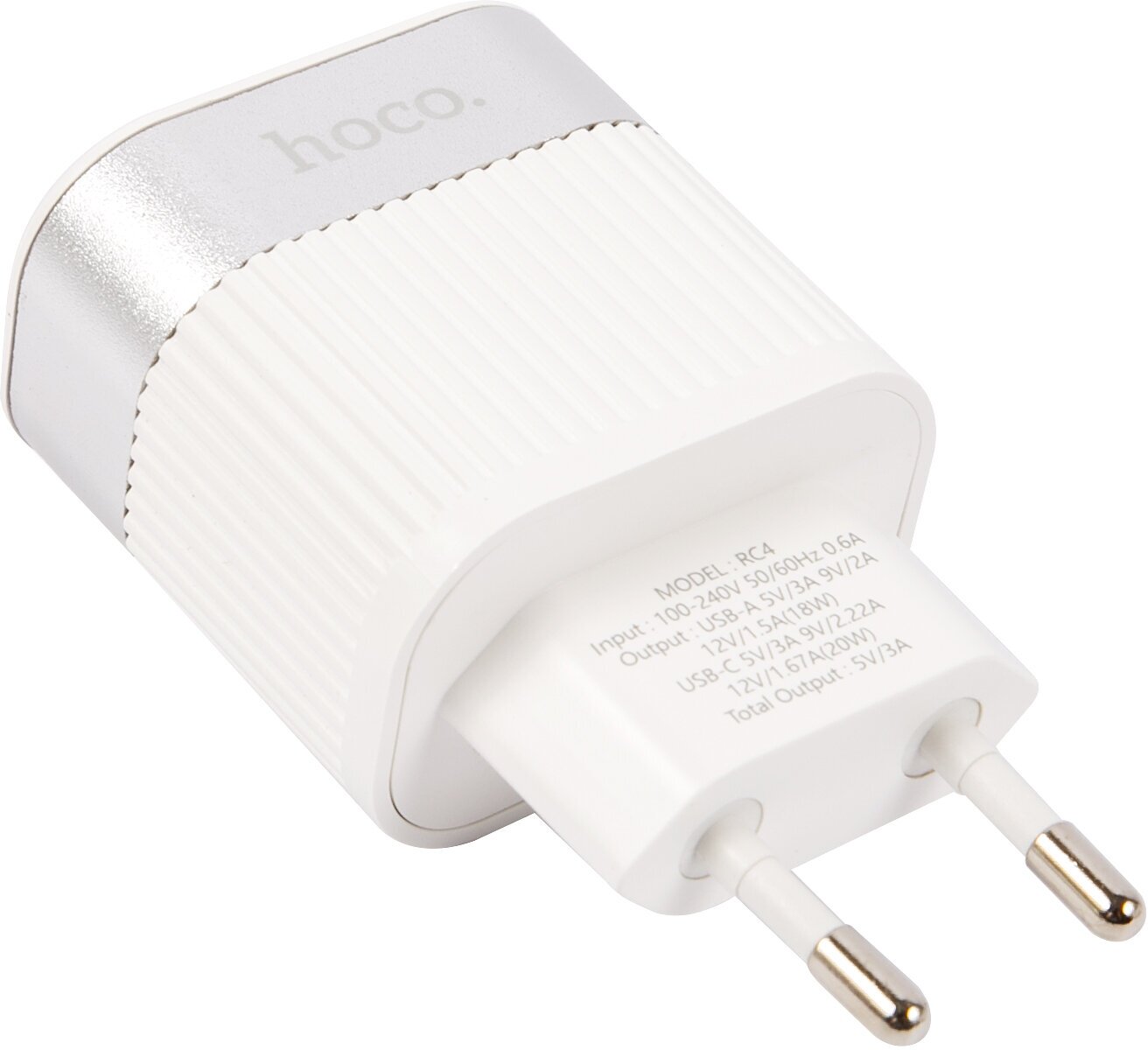 Зарядное устройство сетевое Hoco RC4 USB + Type-C Power Delivery 20W + Quick Charge 3.0 белый