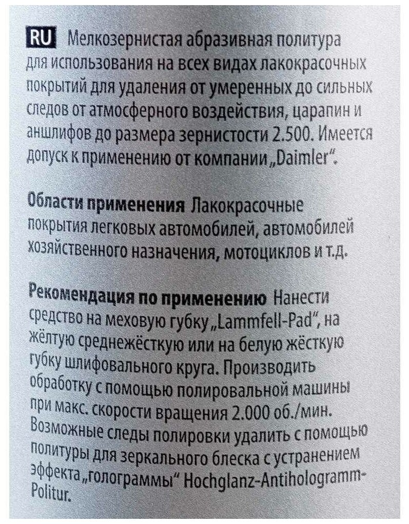 Тонко-абразивная полироль Koch Chemie FEINSCHLEIFPASTE F5 181001 1 л 004543 информация: