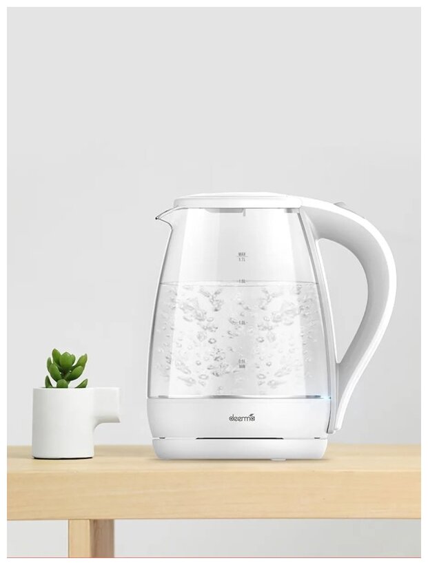 Чайник электрический DEERMA DEM-SH30W, стекло, 1.7 л, 2200 Вт, белый