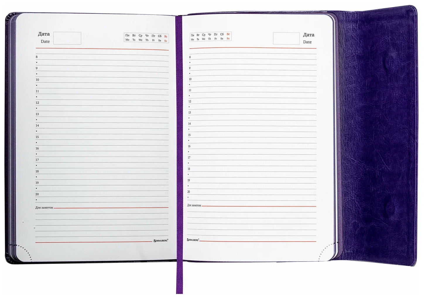 Ежедневник с магнитным клапаном недатированный под кожу А5 фиолетовый, BRAUBERG Magnetic, 113282 информация: