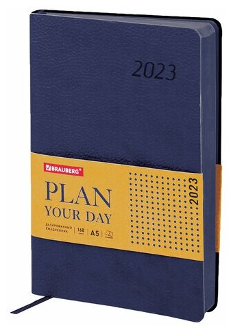 Ежедневник датированный 2023 А5 138x213 мм BRAUBERG "Stylish", под кожу, темно-синий, 114068