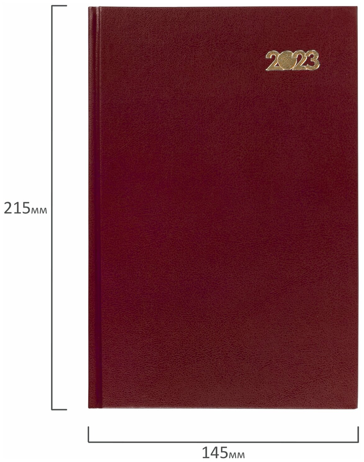 Ежедневник датированный на 2023 (145х215 мм), А5, обложка бумвинил, бордовый, 114188
