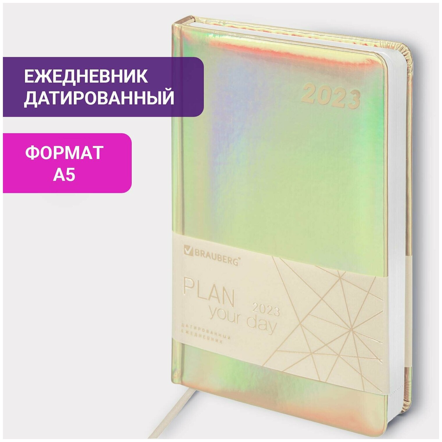 Ежедневник-планер (планинг) / записная книжка / блокнот датированный на 2023 год формата А5 (138x213 мм) Brauberg Holiday, под кожу, зеркальный