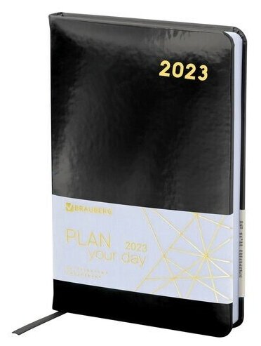 Ежедневник датированный 2023 А5 138x213 мм BRAUBERG "Holiday", под кожу, "зеркальный", черный, 114028 114028 информация: