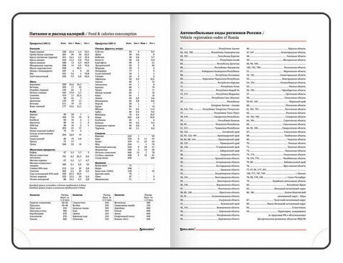 | Особенности | календарь / перфорация уголков / справочная информация / ляссе / прошивка по периметру обложки / закругленные углы |