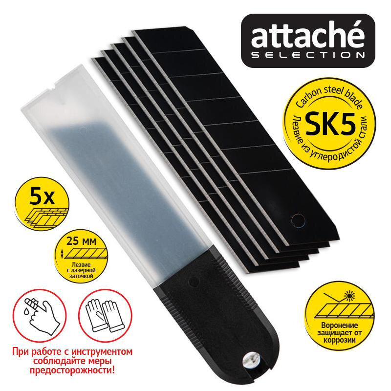 Лезвия для ножей Attache Selection Запасные, 25 мм, сегментированные, воронение, 5 шт (SX25T-5)