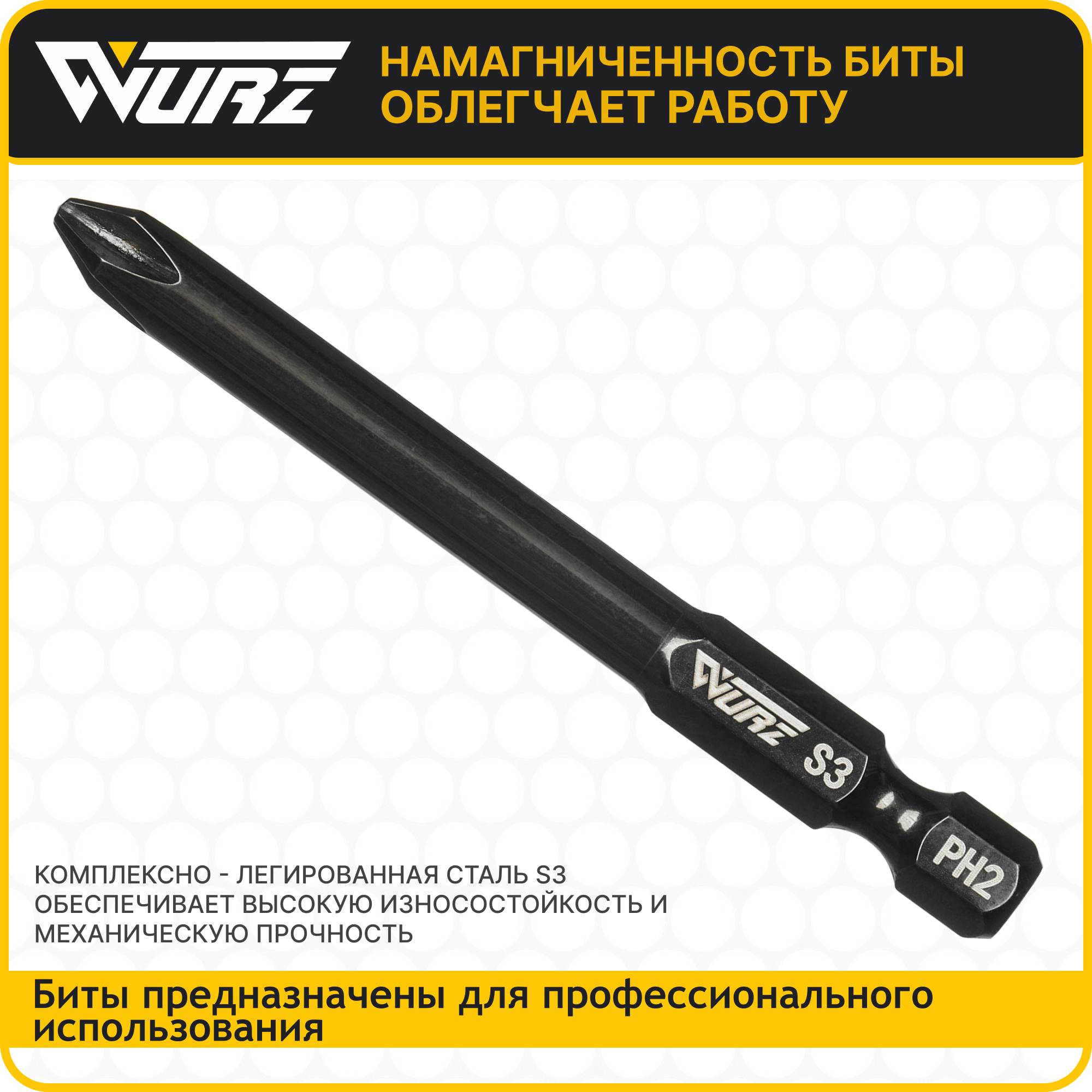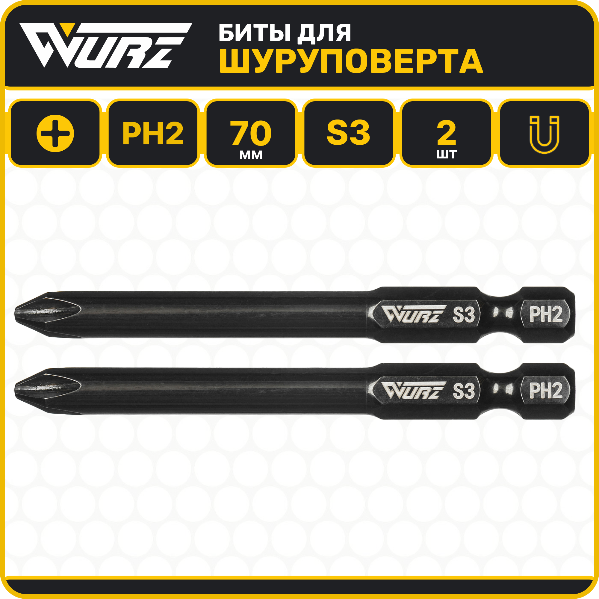 10 цен на Бита PH2 x 70мм S3 2шт. намагниченная WURZ 3000-2