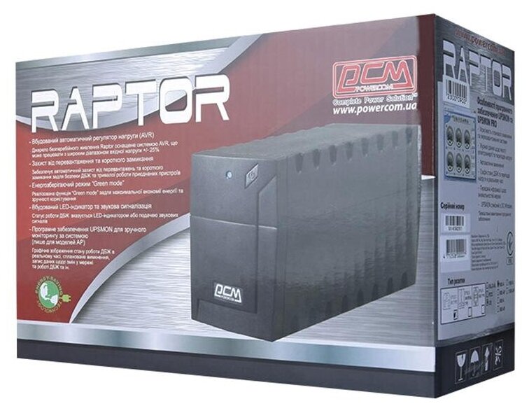 ИБП Powercom Raptor 800 VA, EURO, розеток - 3 (RPT-800AP EURO) информация: