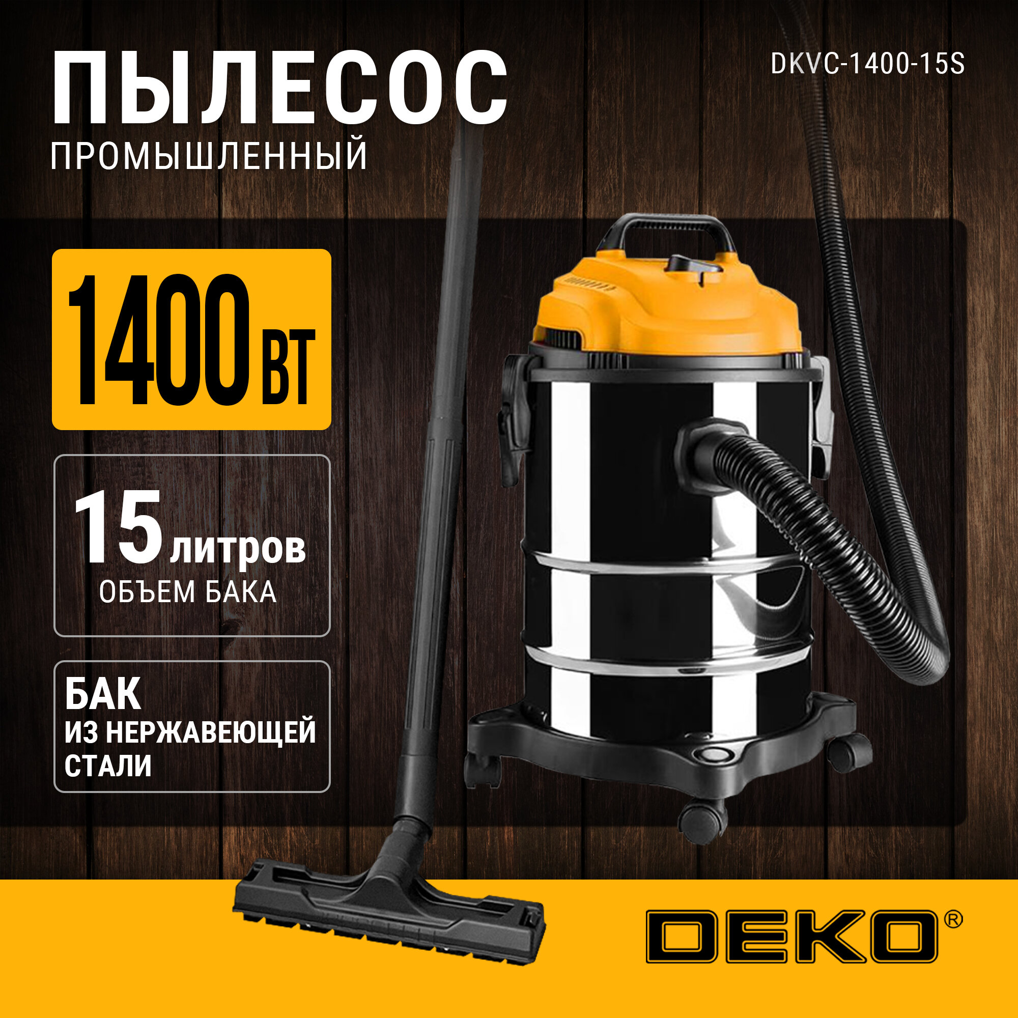 Строительный пылесос DKVC-1400-15S, 1400 Вт, корпус из нержавеющей стали, 15 л 6 372 ₽