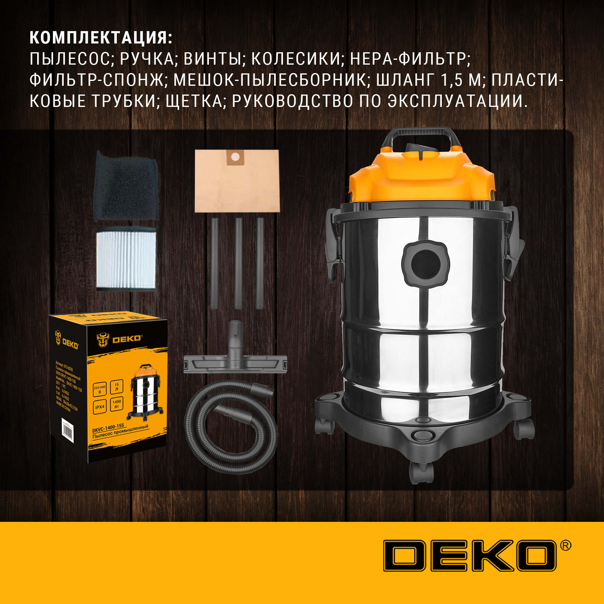 Строительный пылесос Deko DKVC-1400-15S информация: