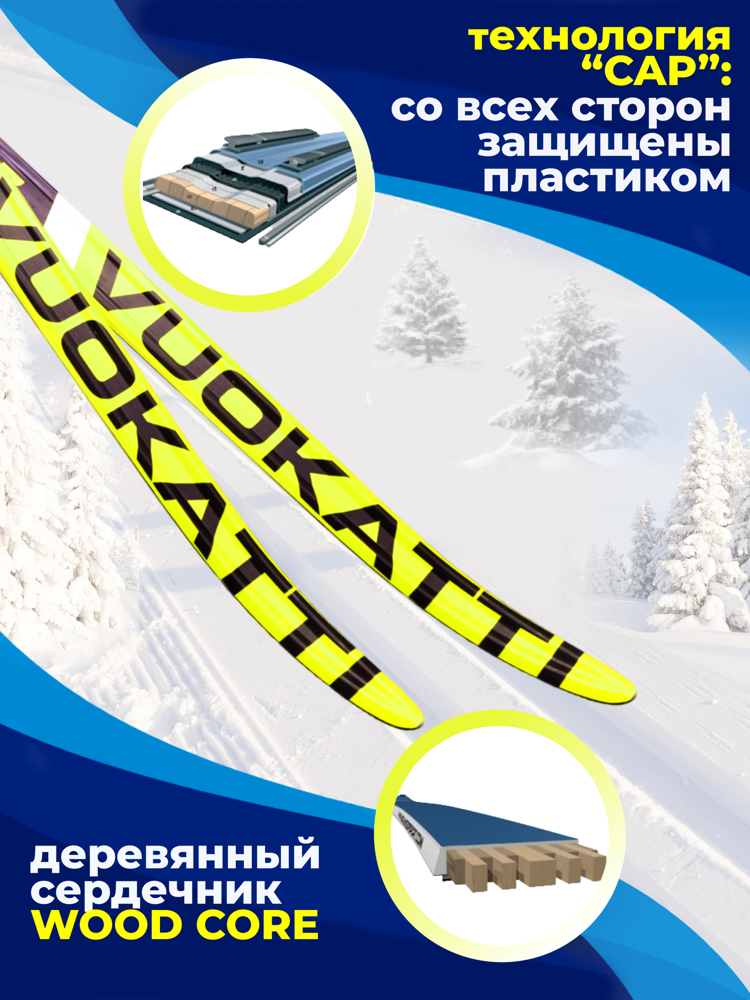 Лыжи беговые 180 см VUOKATTI Wax Black/Yellow информация: