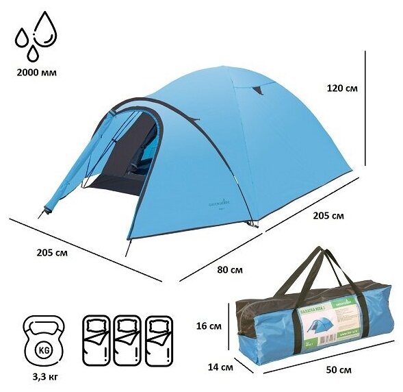 Палатка кемпинговая трёхместная Green Glade Nida 3, голубой