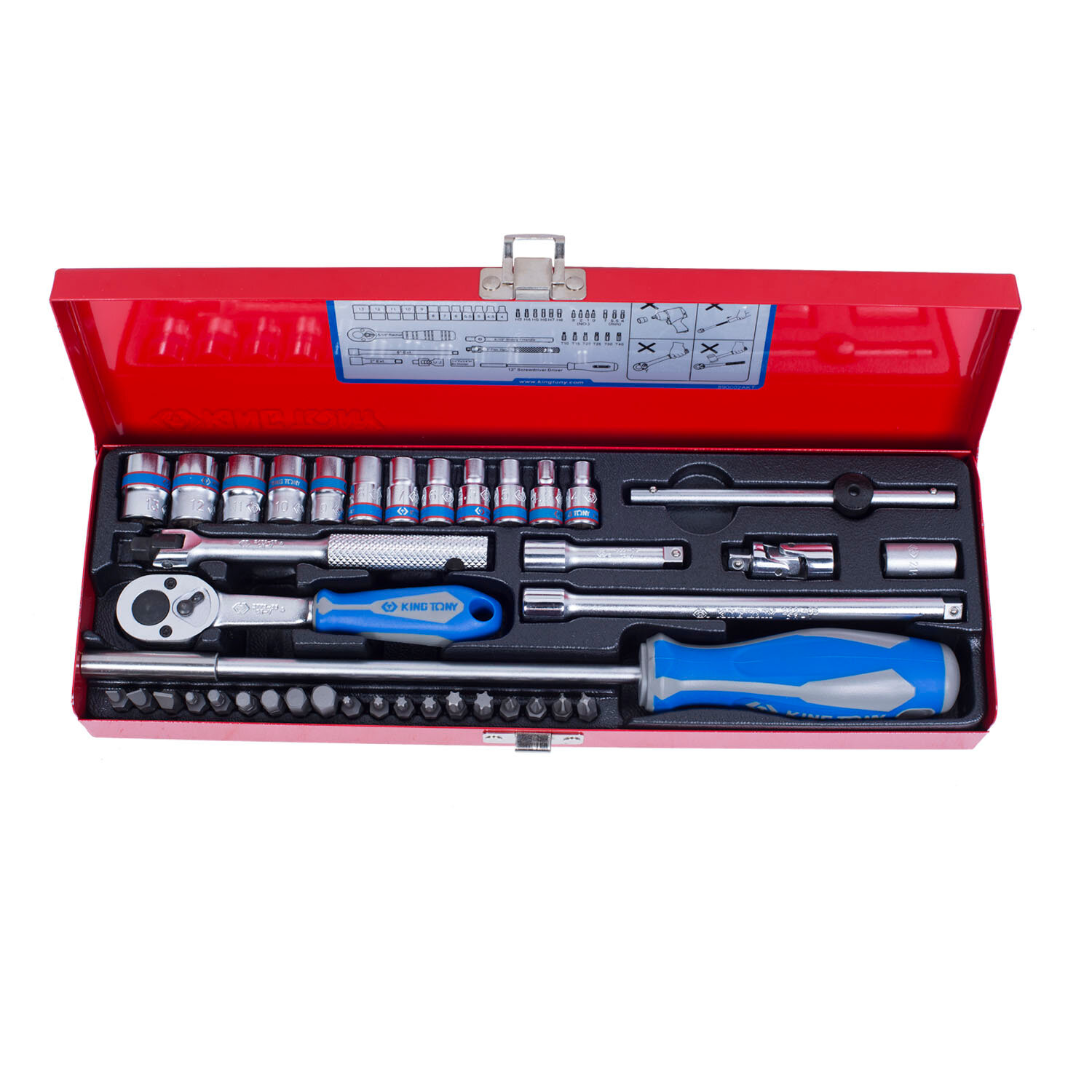 Набор торцевых головок с принадлежностями 1/4", шестигранные, 4-13 мм, 39 предметов KING TONY 2540MR информация: