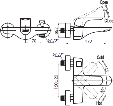 Смеситель на раковину настенный Эверест B46-350 с круглым поворотным изливом, кран-буксы 1/2", хром