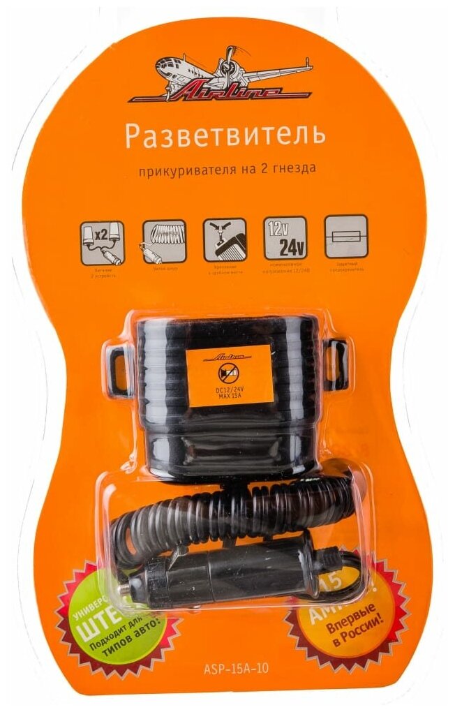 10 цен на Прикуриватель-Разветвитель Airline 2 Гнезда 15а С Витым Шнуром AIRLINE арт. ASP-15A-10