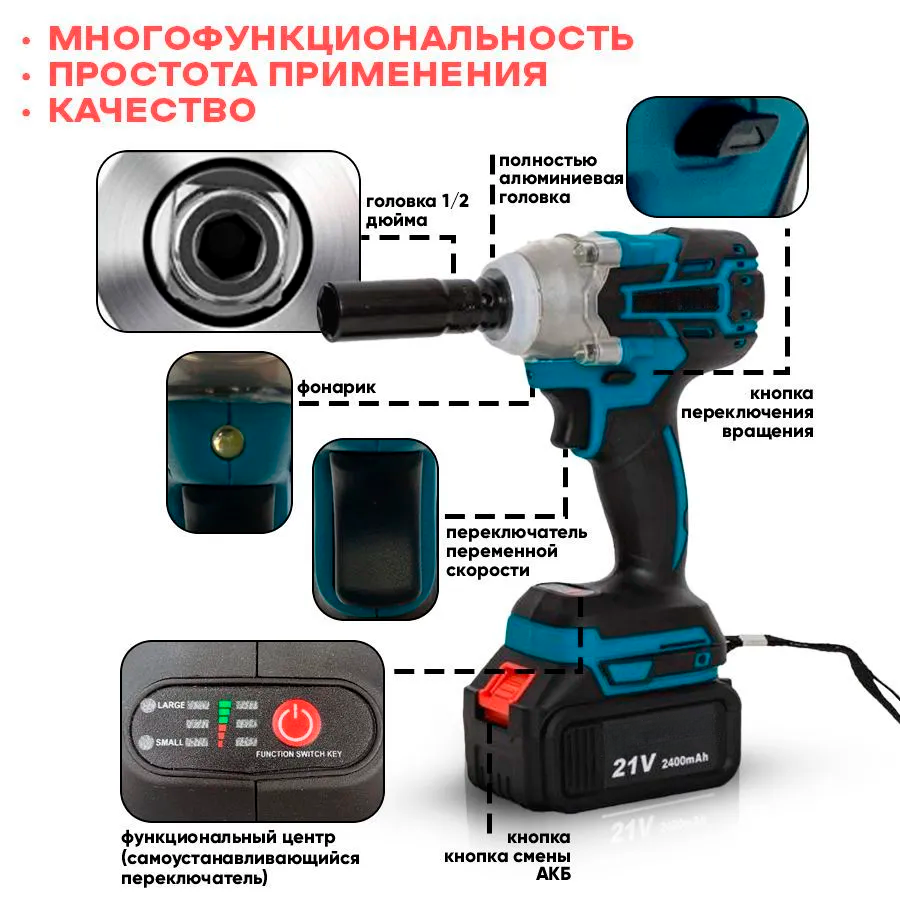 Отзывы на Гайковерт ударный, аккумуляторный Без АКБ /Аккумуляторный электроинструмент/ Гайковерт ударный
