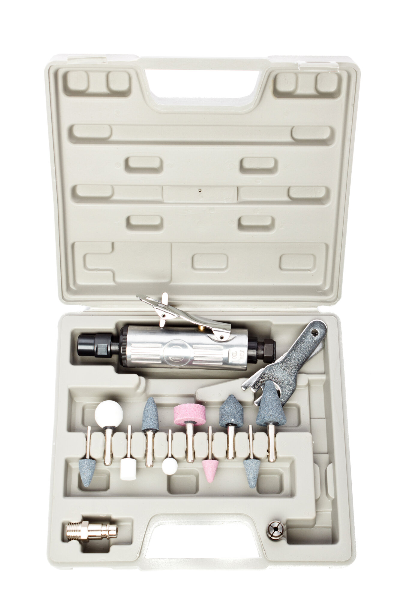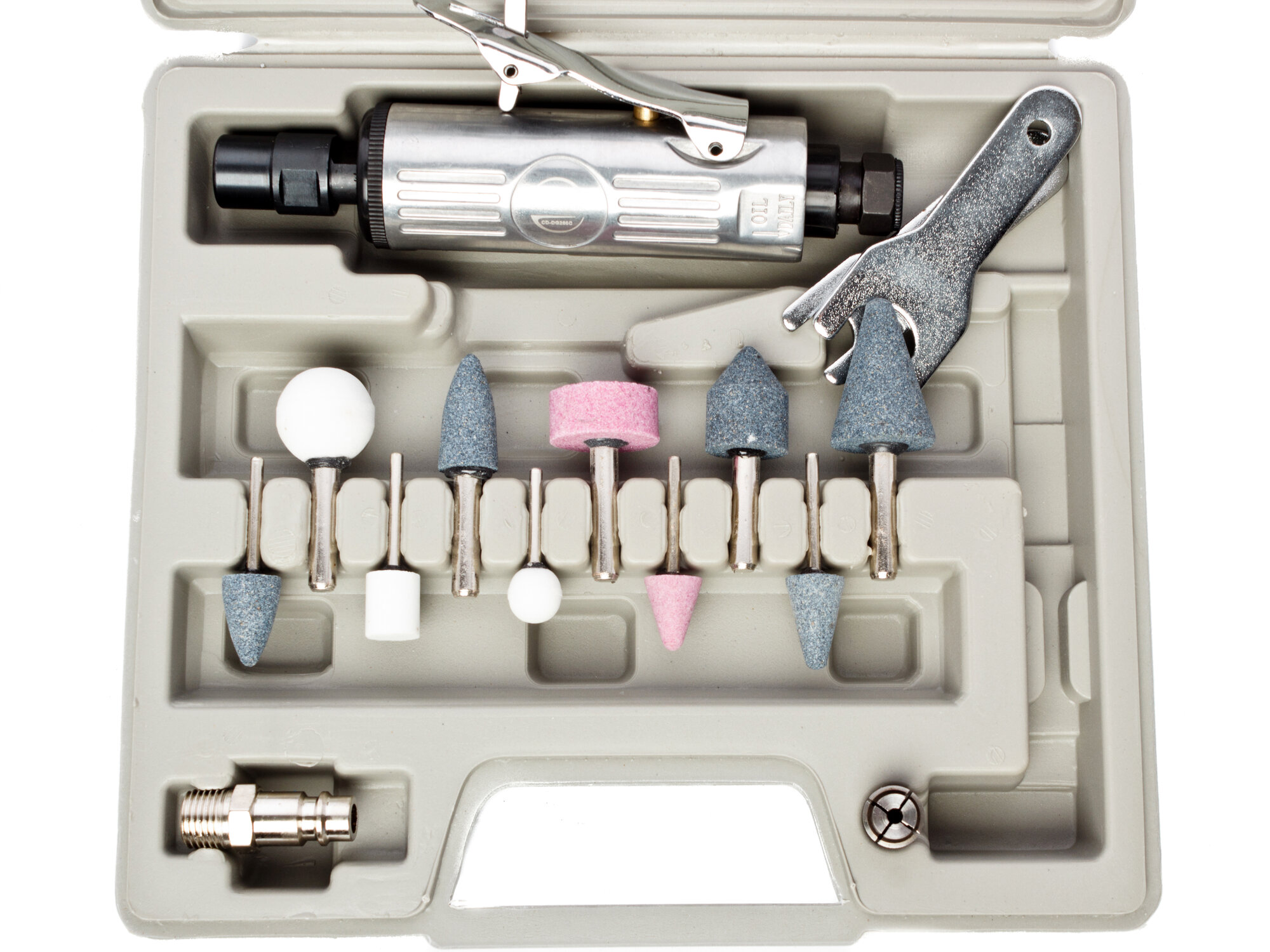 | Комплектация | пневматическая машина, набор оснастки, штуцер, кейс |