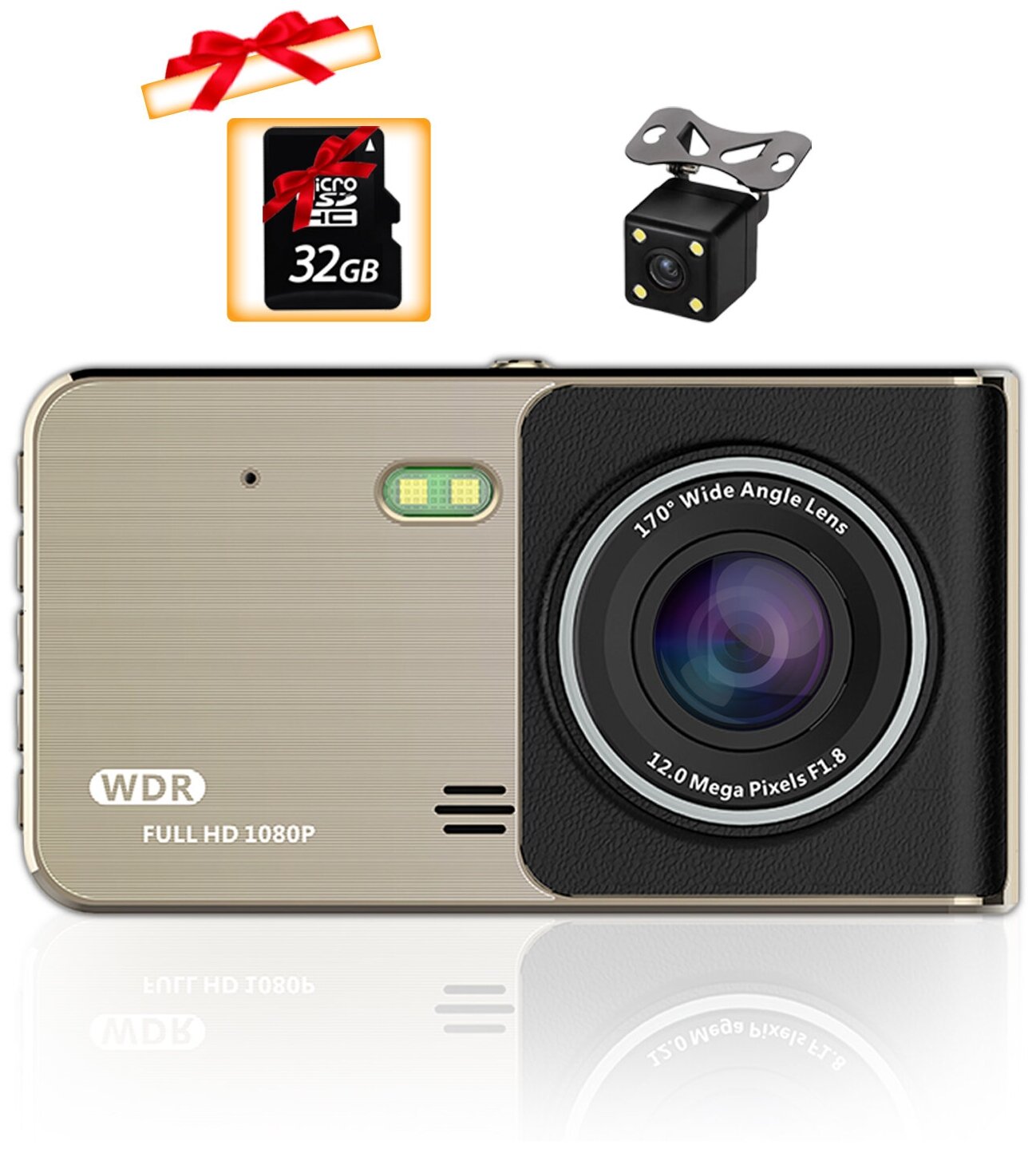 Автомобильный видеорегистратор S&H Electronics с камерой заднего вида датчик движения G-сенсор 2 камеры TF-карты на 32 Гб автовизитка табличка с номером