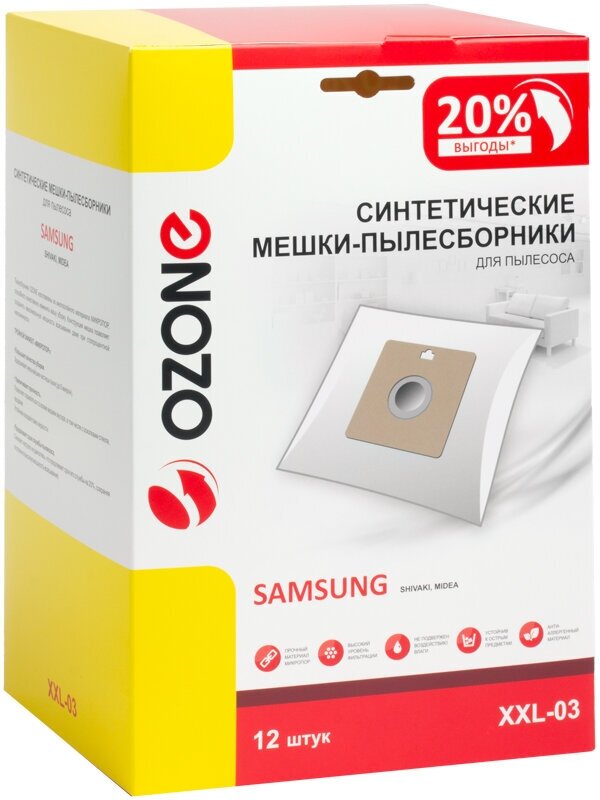Отзывы на Мешки-пылесборники Ozone XXL-03 синтетические 12 шт + 2 микрофильтра для SAMSUNG