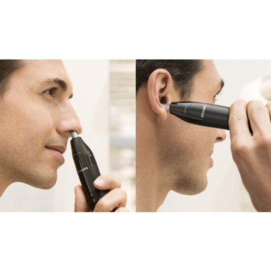Триммер Philips/ Триммер для носа, роторный режущий элемент, водонепроницаемый корпус - пластик, цвет - черный, в комплекте батарейка АА