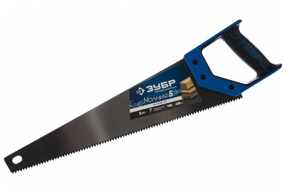 Ножовка по дереву (пила) ЗУБР МОЛНИЯ-5 450мм , 5TPI, апрямой крупный зуб, быстрый рез поперек волокон, для крупный и средних заготовок 15075-45 информация: