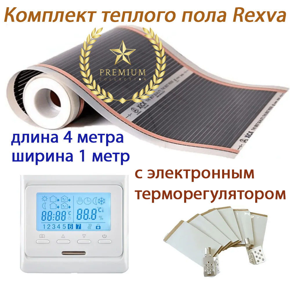 Комплект инфракрасный пленочный теплый пол Rexva Xica XM 310 ширина 1 длина 4 метра и электронный терморегулятор информация: