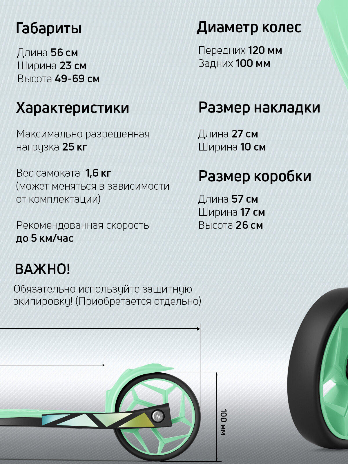 | Диаметр переднего колеса | 120 мм |