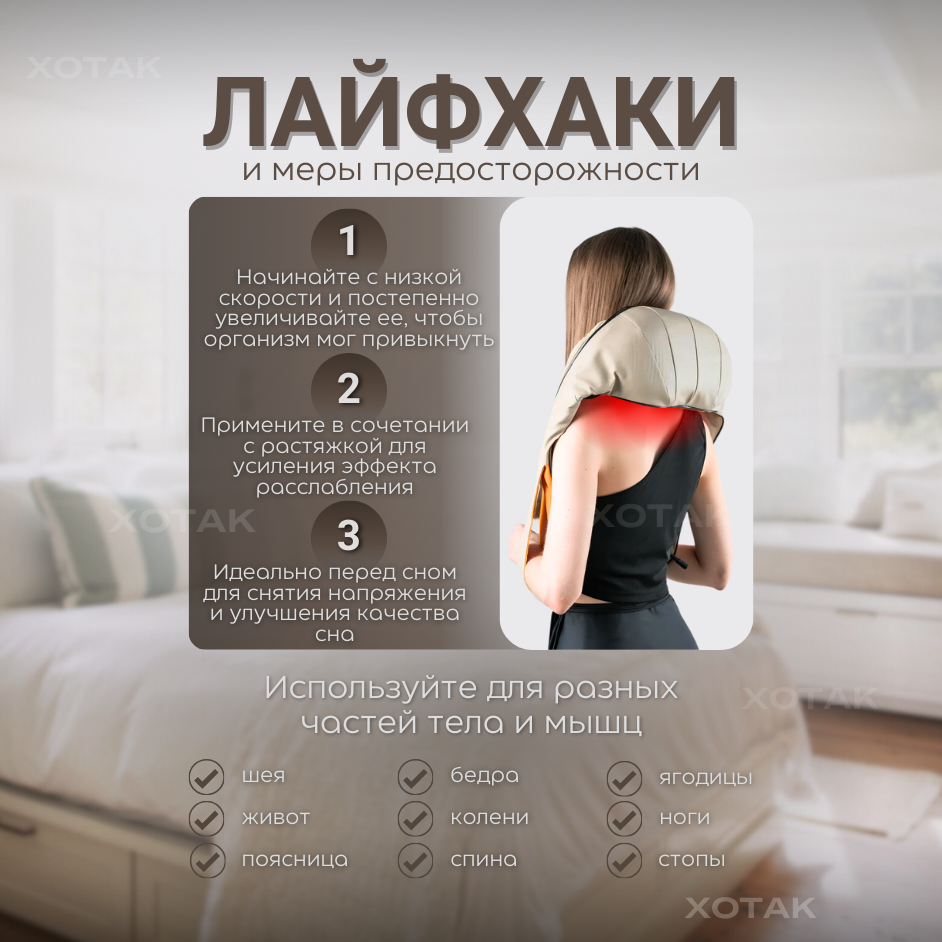 10 цен на Массажер для спины, шеи и плеч универсальный/Электрический массажный воротник/Массажер с подогревом/Виброворотник
