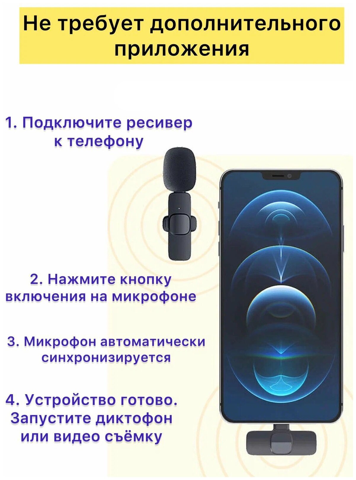 Микрофон петличный Bluetooth Lightning Беспроводная петличка Bluetooth Lightning Петличка для записи звука для iPhone iPad iPod информация: