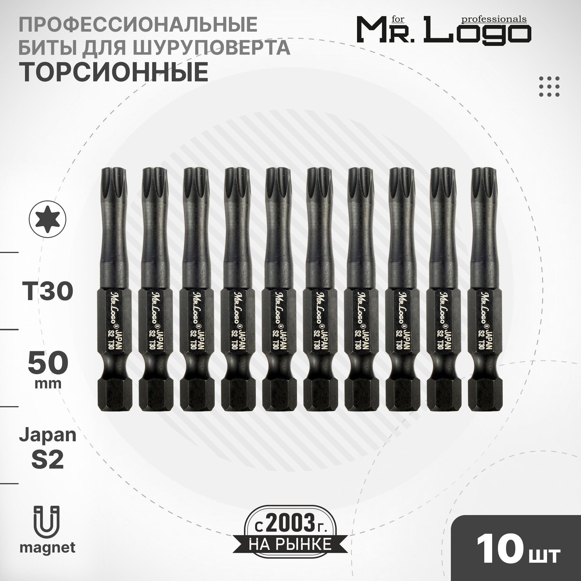 10 цен на Бита T30 x 50мм 10шт. S2 торсионная намагниченная Mr.Logo A73500T30