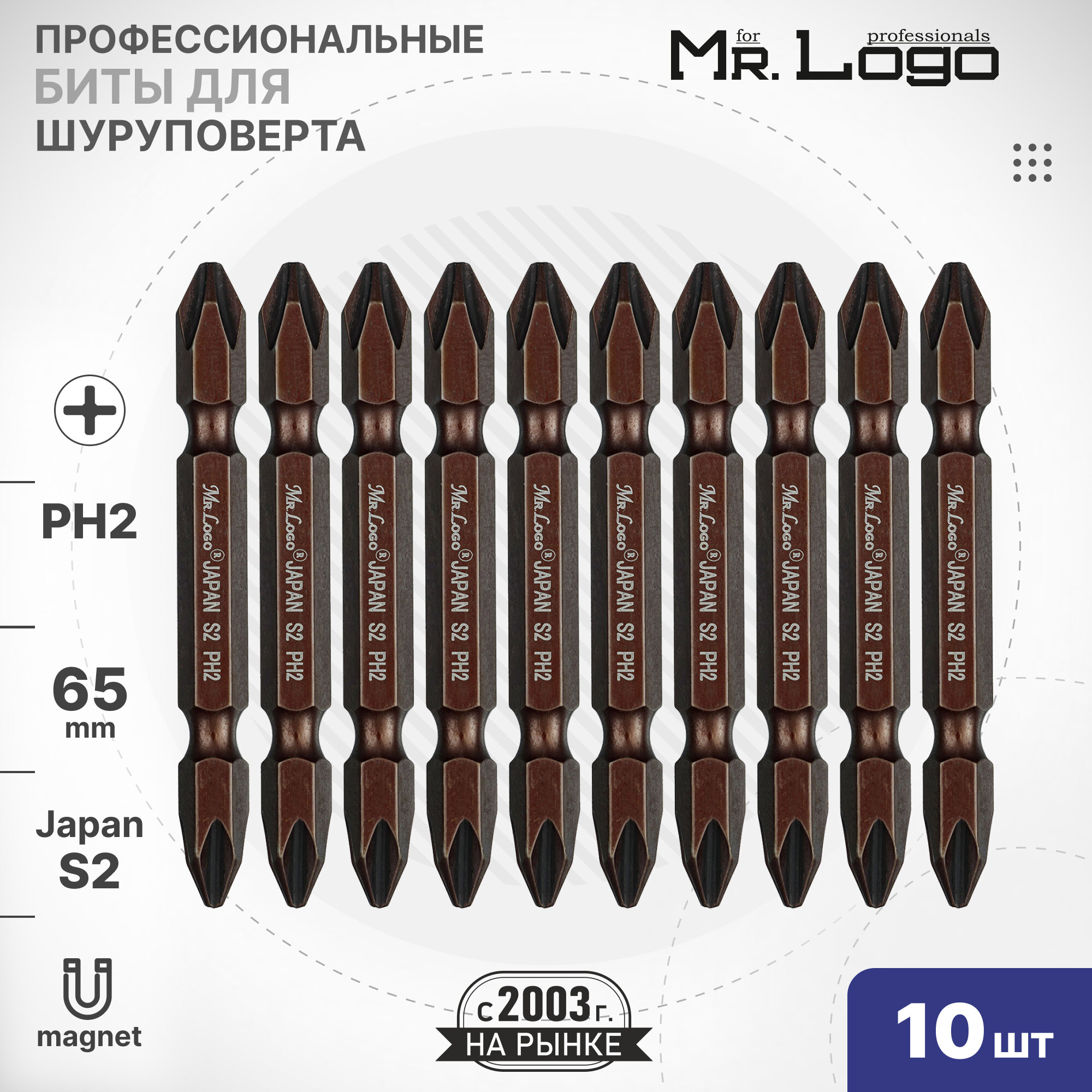 Бита PH2 х 65мм 10шт S2 двусторонняя намагниченная Mr.Logo A11400-2 информация: